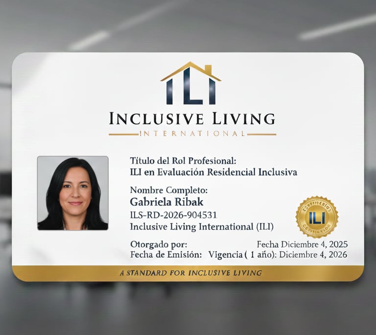 Es una formación práctica que enseña a evaluar viviendas desde la mirada de Inclusive Living International. No es académica: es una acreditación profesional que habilita a trabajar con la metodología de ILI en visitas, análisis de hogares y proyectos residenciales.